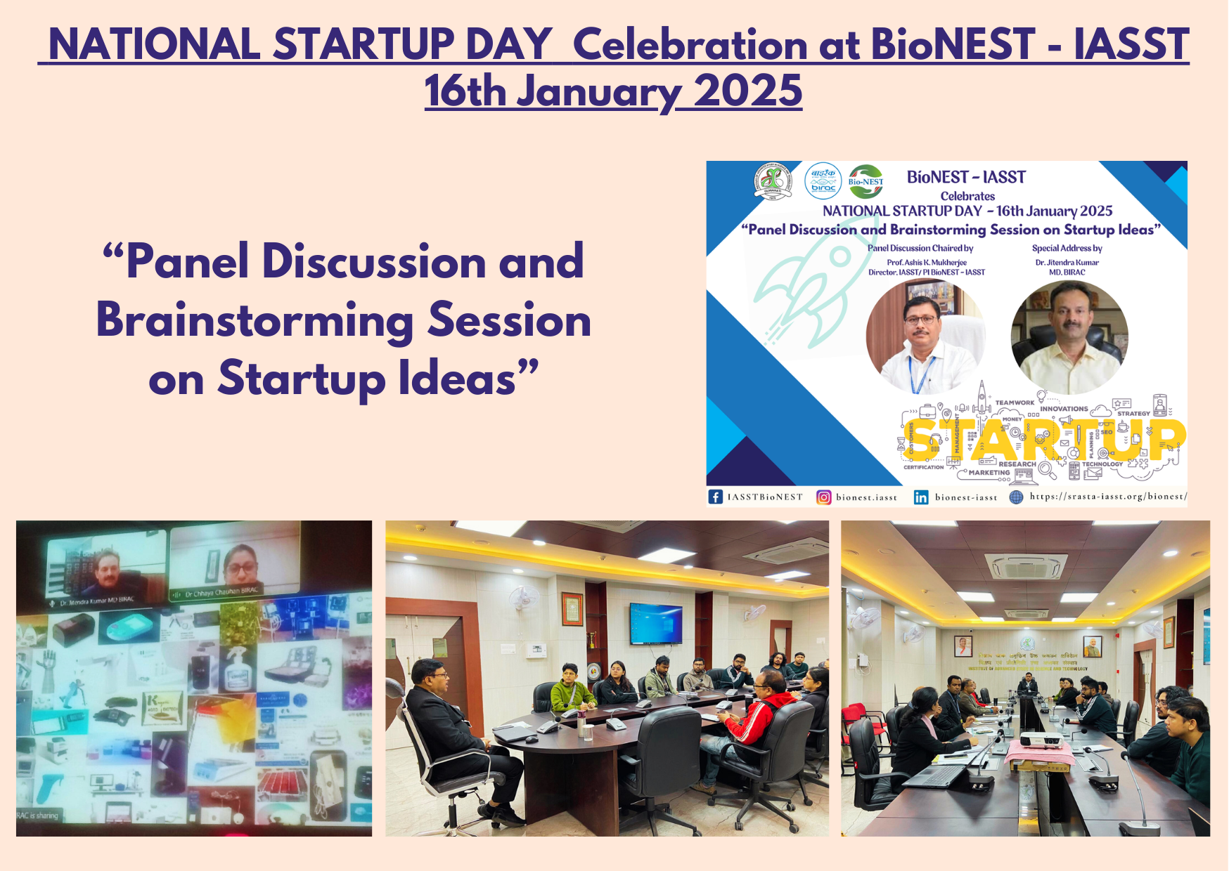 BioNEST- IASST held a “Panel Discussion and Brainstorming session on Startup Ideas” on January 16, 2025, to mark National Startup Day. Dr. Jitendra Kumar, MD, BIRAC, virtually addressed all